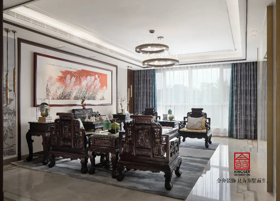 天山國賓壹號188平米新中式風(fēng)格裝修實景