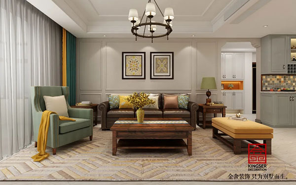 漢王府160平美式風格裝修陽臺效果圖 漢王府160平美式風格裝修餐廳效果圖 漢王府160平美式風格裝修客廳效果圖