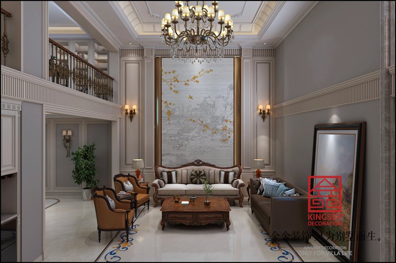 衡水漢王府別墅裝修現代法奢風格客廳效果圖