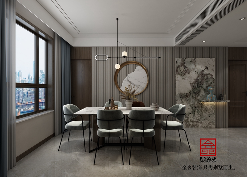 國賓壹號(hào)新中式風(fēng)格躍層裝修餐廳效果圖