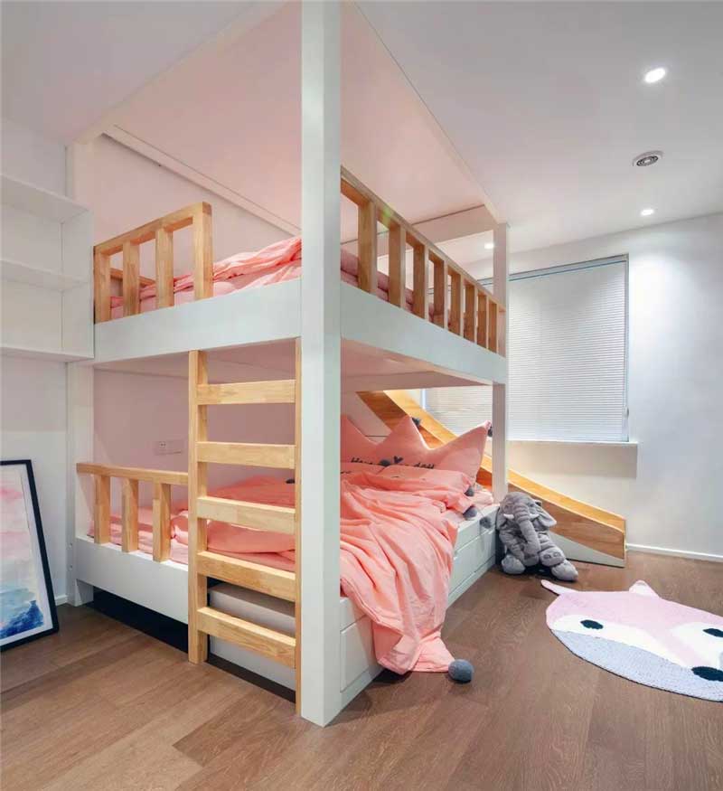 兒童房采用高低床的設計,以為空間增添一些靈動活潑的氣息,孩子可以活動玩耍的空間也大大的增大。