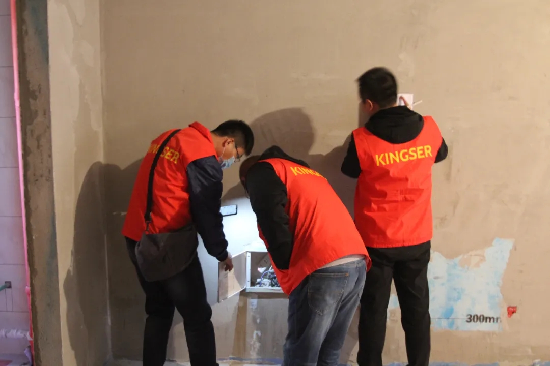 金舍裝飾設計七部店長孟蕾、工程部經理梁建寧分別帶隊,對小區內所有已開工的工地都進行全面的檢查。從每一個工地細節入手,將每一個工地的施工都嚴抓嚴管,絕對不允許在施工中出現疏漏。從設計到施工,從主材到后期管理,每個步驟金舍裝飾都堅決做到有條不紊。每一件材料、主材的擺放,每一個工程的細節都做到盡善盡美,讓選擇金舍的客戶都能感受到我們的拳拳用心。