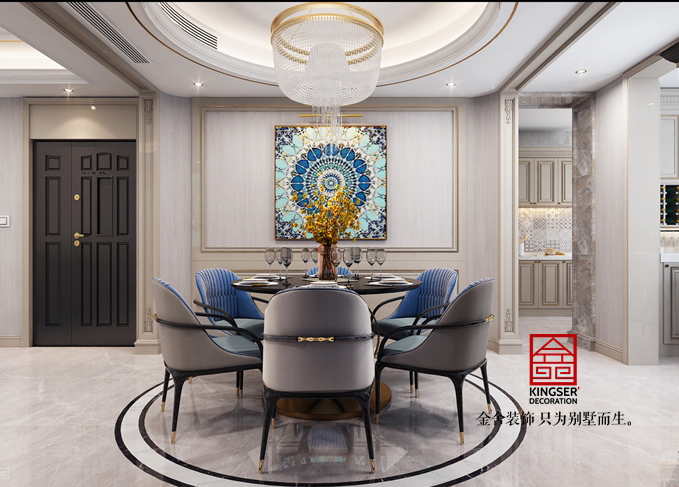 在輕奢風格的特點中,裝修設計以簡潔大氣為主。但是,簡約設計不簡單,看似簡單的設計風格,每一個設計細節經過深思考慮,表達主人的用心、精心。通過各種富有張力的設計手法,給人一種時尚、高雅、品質與溫馨的感覺,露出本真而純粹的生活,融入了內涵、奢華的設計感。