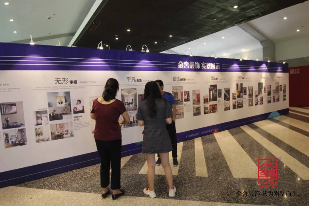此次活動的重心就是在于對金舍裝飾設計的展示,以實景和案例為主要切入點,輔以工程材料的展示和實驗,讓家裝的設計貫穿在會場的每一個角落,讓每一位來到會場的業主朋友們都能感受到金舍裝飾專業且獨樹一幟的設計精髓。