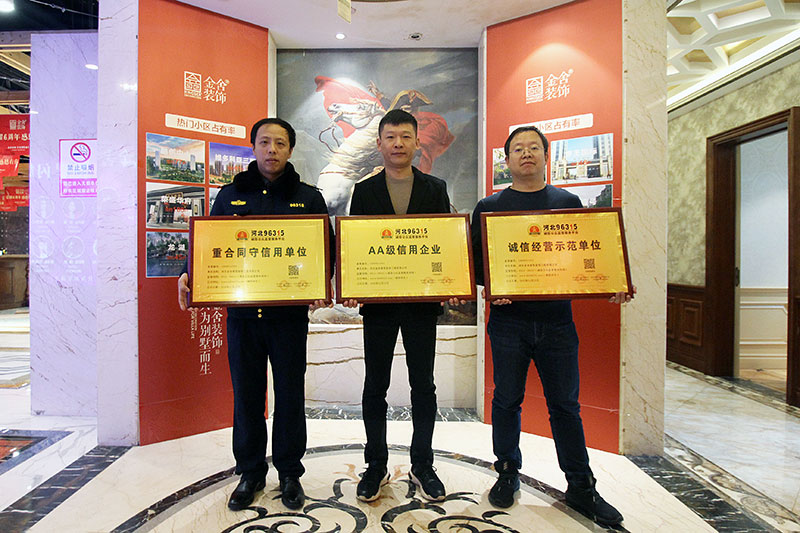 恭喜金舍裝飾榮獲“重合同守信用單位”“誠信經(jīng)營示范單位”“雙A級信用企業(yè)”稱號,這既是市場監(jiān)管機(jī)構(gòu)對金舍裝飾高標(biāo)準(zhǔn)的肯定,也是對金舍裝飾的鼓勵(lì)和鞭策