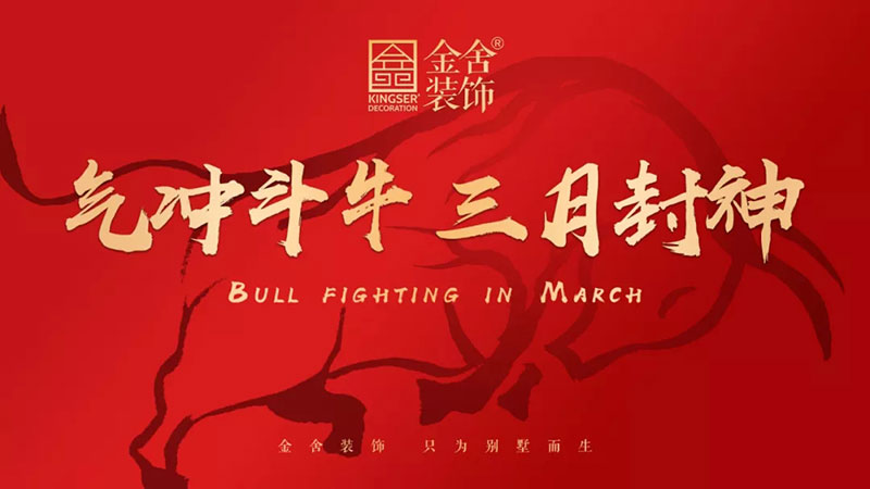 “氣沖斗牛,三月封神。”金舍裝飾三月奮戰(zhàn)季正式啟動了,每年的三月都是家裝最旺之時。榮耀三月,收獲成功,在這個奮斗的季節(jié)里,希望各位金舍家人都用自己的行動、汗水和付出,收獲屬于自己的成功與夢想。