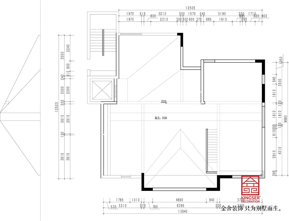 廚房相對較小、頂部閣樓采光較弱、空間使用率較低,樓梯光線較暗,沒有和樓下產生互動。