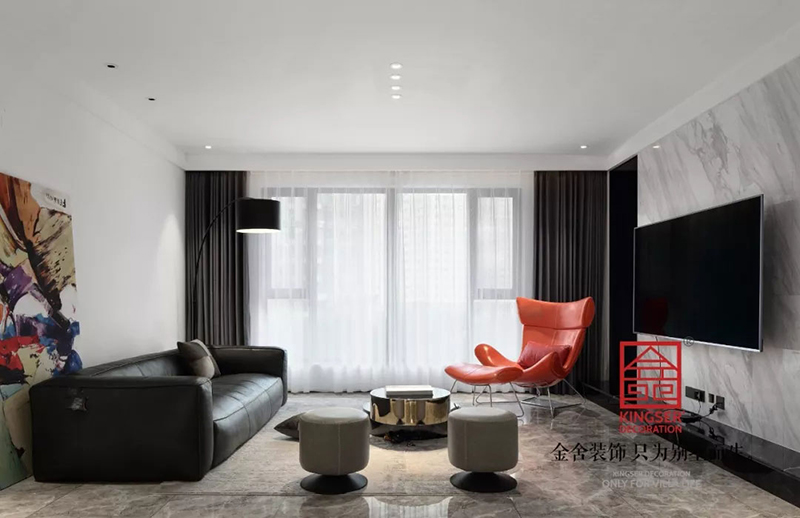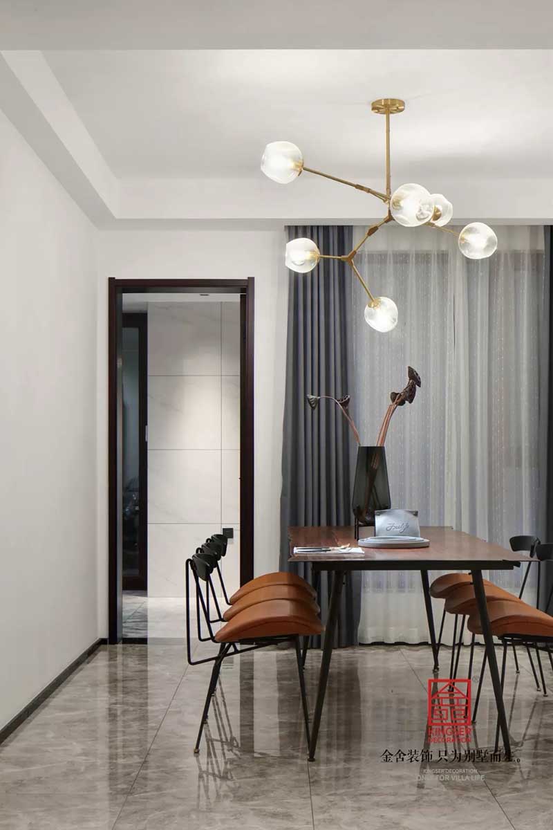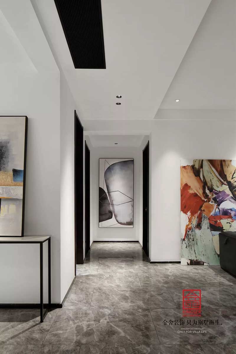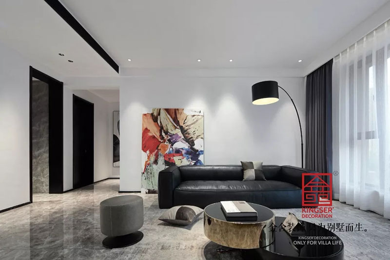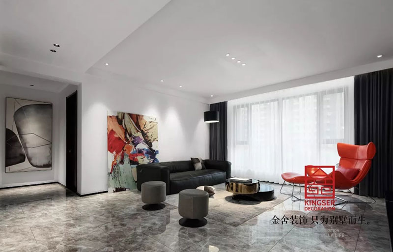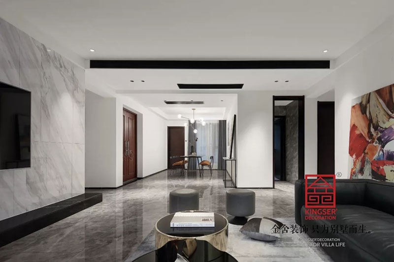 石家莊金舍裝飾-天山九峯175平米極簡風格裝修實景圖。極簡風格的美麗不光是一種快節奏生活中的剪影,也是一種特立獨行的生活方式,對于極簡人來說優雅也是一種生活態度。同樣對于推崇極簡風,推崇工業風的人來說,極簡風格就是一個極致的風向標。