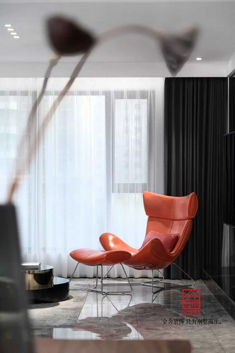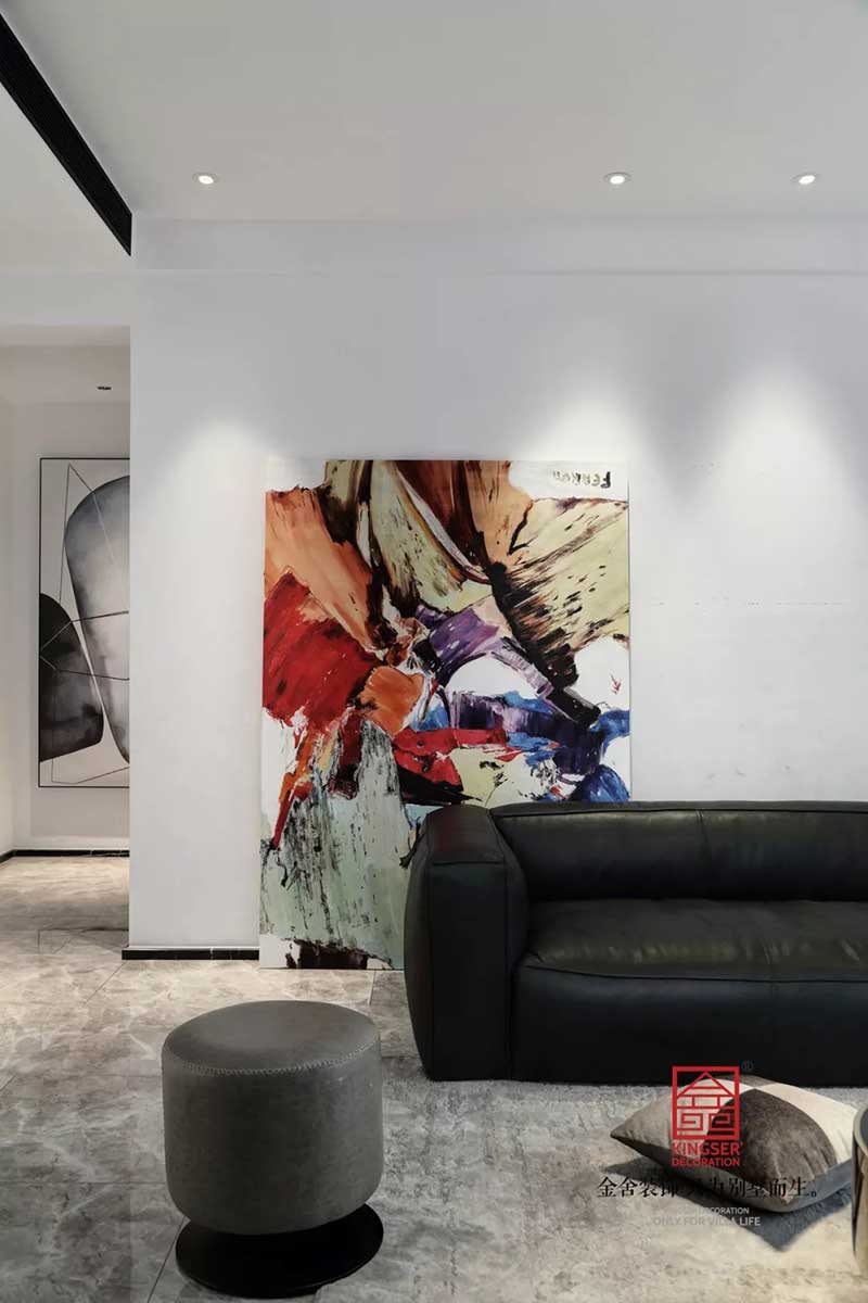 藝術是多層次的,同樣對于本案來說也是一樣。風格多角度,既有對于色彩的感知與暢想又有黑白灰存在的百搭色調,藝術的色彩不是單調的,同樣家居也是一樣。一點罌粟紅,一筆寶石蘭,濃重但是純凈,將冷靜的空間效果煥發出一種沉溺藝術殿堂的興奮感覺。