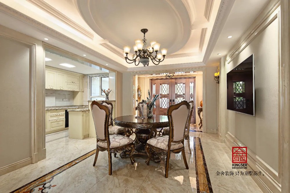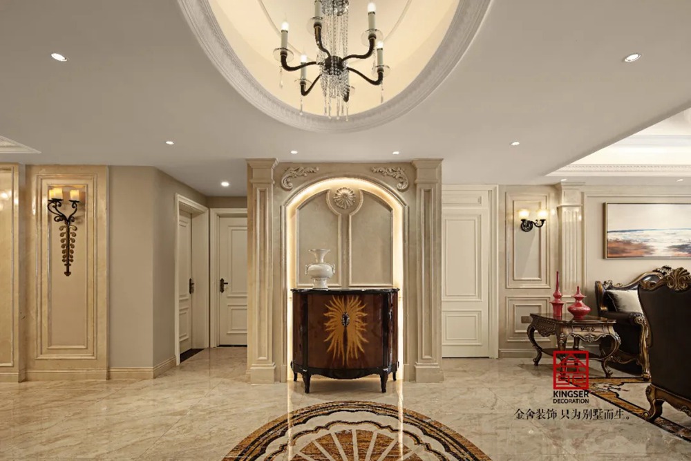 此案例為石家莊金舍裝飾-御河上院220平米歐式風格裝修實景。對于歐式的風格來說,元素的運用大部分出自于之前的宮廷,從凡爾賽宮到各種歐倫古堡,近千年來的輝煌締造了不斷衍生的文明和欣欣向榮的文化。