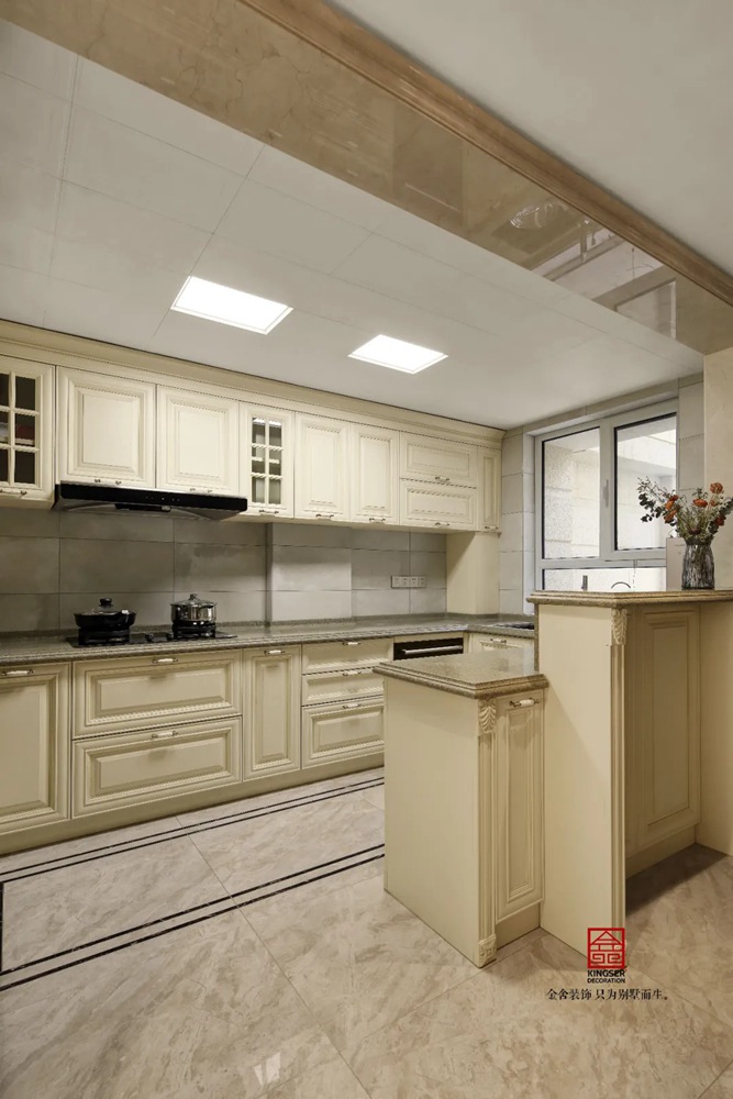 與整個家居格調顏色相同的歐式經典搭配勾勒出一種紳士般的優雅,不張揚,不浮夸,慢慢彰顯自己獨特的氣質,擁有這樣的開放廚房,對美食的熱愛程度想必會上升一個高度。