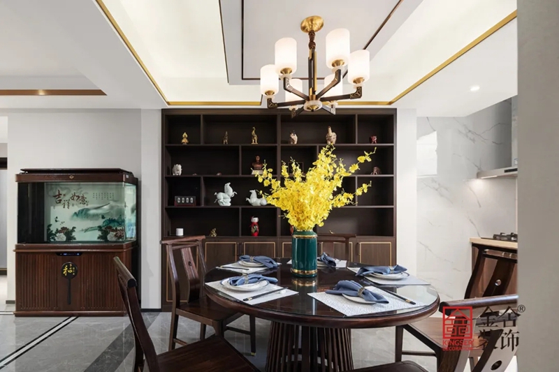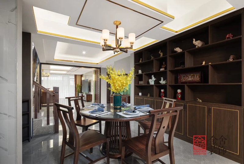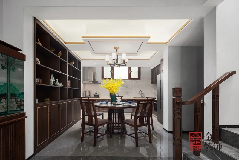 此案例為石家莊裝修公司-正定墅洋居禮240㎡新中式風格裝修實景。歲月的味道,融入了太多了的情感,有名利,有思念,有得失,有感傷,人生的不完美正是有這些因素所交織創造的,可以說活在這個世界上每天都在跟自我較勁,今日的自己一定要比昨日的自己更優秀,不光是為了自我的肯定,也是為了能夠找到那個屬于自我的定位與生活。人生的感悟縈繞在腦中,就像永遠躲不開的“人生三個問題”一樣,必然經歷但是無解。