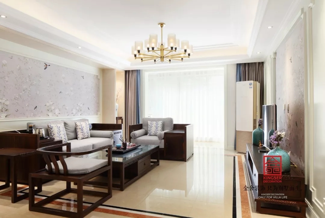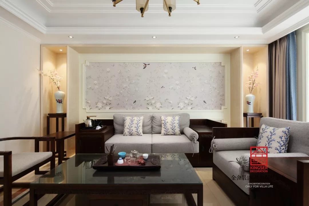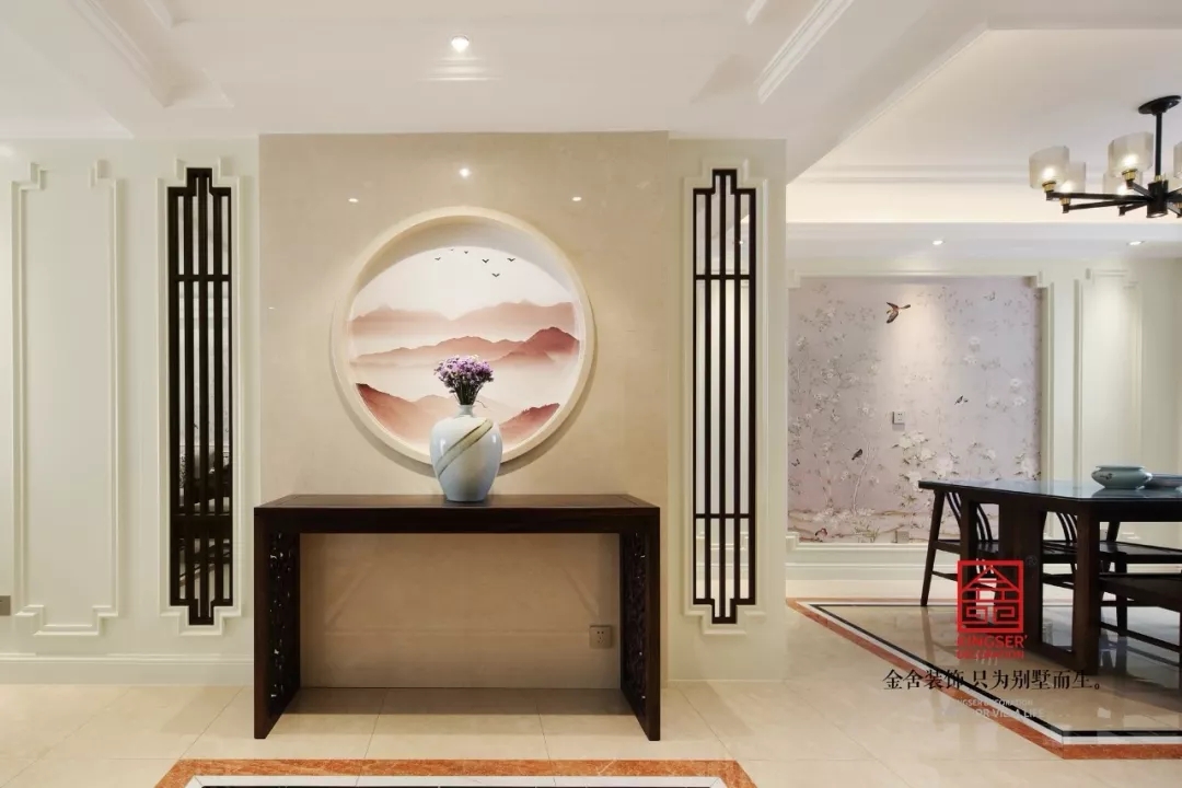 此案例為石家莊金舍裝飾-冀興尊園150平米新中式裝修效果圖。傳統的中式風格裝修設計古雅、情節濃厚,而新中式的設計是將中式經典中融入更多新的元素,巧妙的結合而成整個居室的裝修效果,讓空間內彰顯典雅韻味而又不失時尚氣息。多種元素的共存,多種風格的兼容,在風格選擇上不拘一格,選取不同觸覺、視覺交織融合,存其風骨,取其神韻,典雅而又不乏時代的積淀。