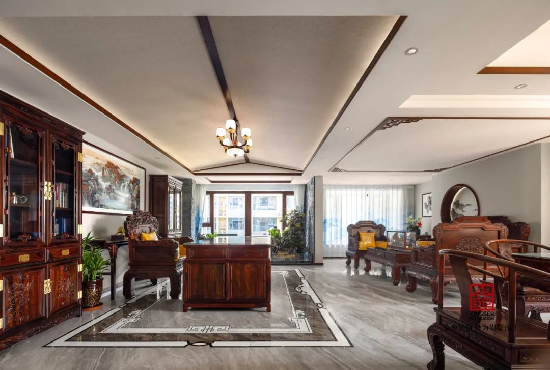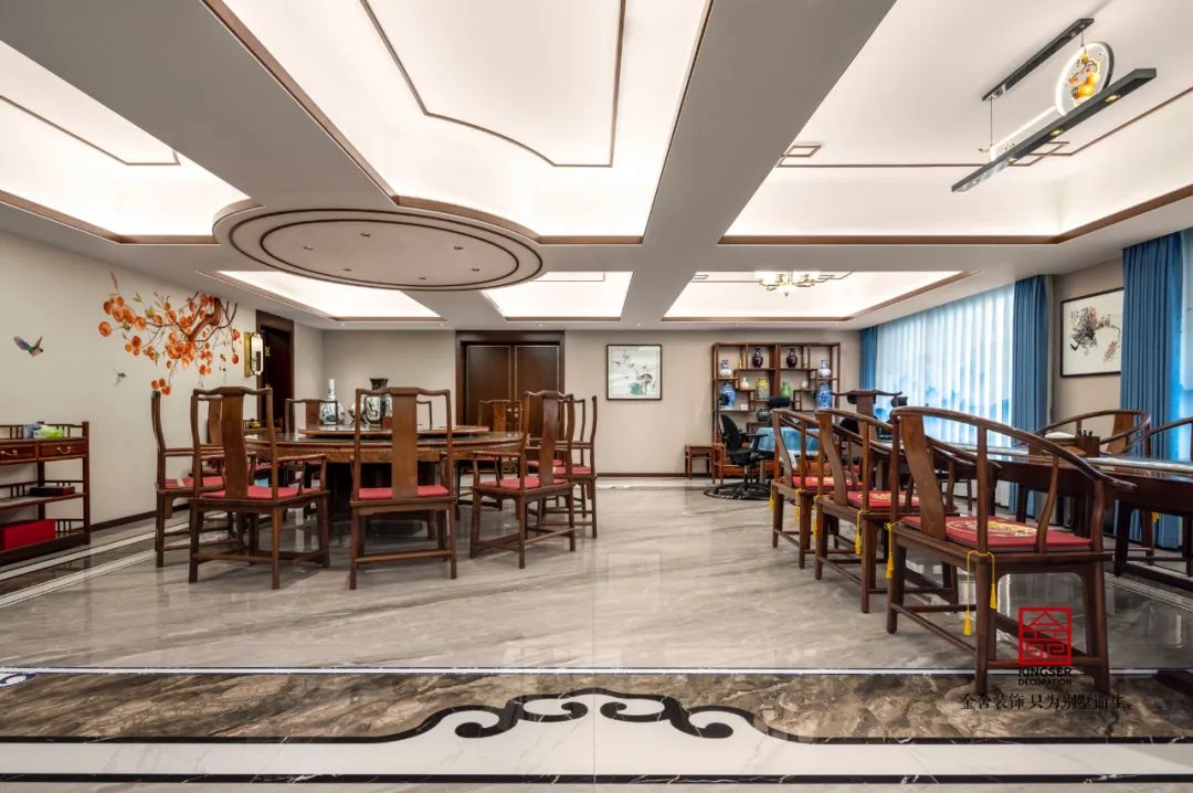 依山造屋,近水結村,徽派建筑總能給人一種天人合一的自然美學意義。 本套家居會所設計以徽派風格為主軸,融合傳統與現代元素,旨在打造一處集會客、辦公、娛樂、休息于一體的雅致空間。