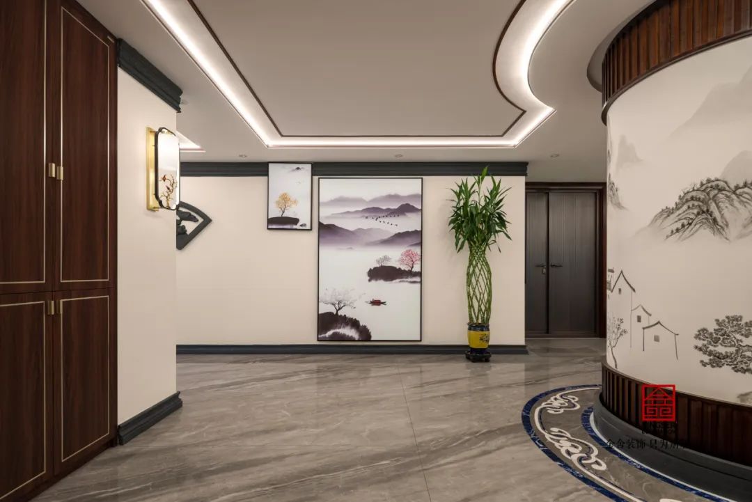 三、精致細膩的裝飾細節,彰顯出東方美學的獨特韻味。在裝飾細節上,設計師同樣展現出了對東方美學的深刻理解與精準把握。無論是彩色墻繪、青磚黛瓦的裝飾,還是傳統圖案、繪畫藝術的點綴,都讓人感受到一種精致細膩的美感。