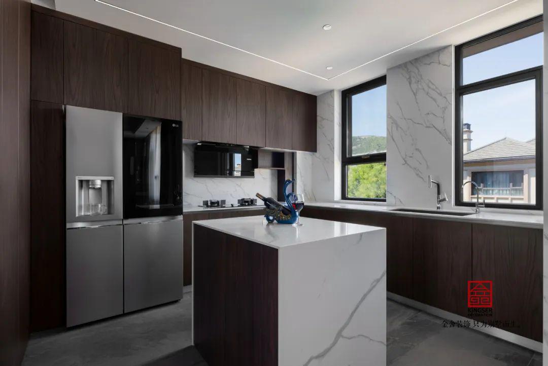 黑白紋理的巖板和同色系的中導(dǎo)臺(tái),在這個(gè)空間中透出一種時(shí)尚的味道。