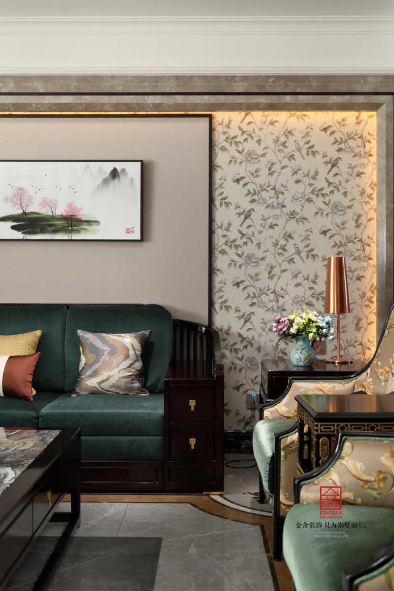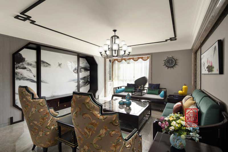 設計說明:此案例為石家莊金舍裝飾-珺合府180平米新中式風格裝修實景中式風格源遠流長,木質紋理家具加上寫意白描繪畫融合一體,家居生活的方方面面都與中式風格的家裝緊密聯系而又互相獨立,讓生活的味道融入到家居之中。