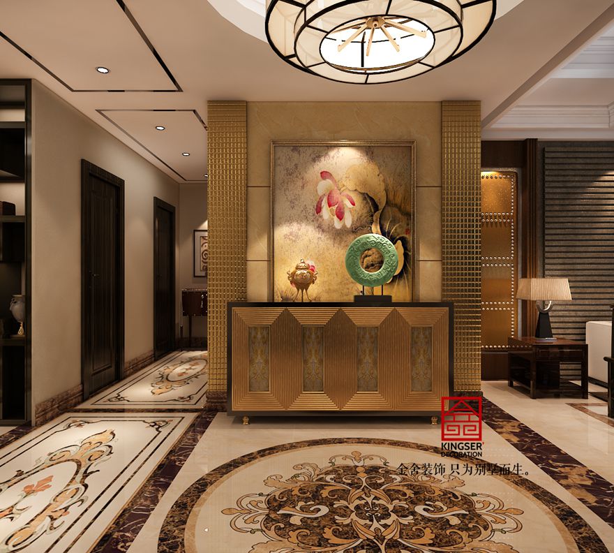 設計說明:此案例為石家莊金舍裝飾-新源燕府186平米新中式風格裝修案例。新中式風格誕生于中國傳統文化復興的新時期,是富有東方特色的新的風格。是現代人將現在流行元素與傳統文化的結合,它們的完美融合是現在美學上的一個新的亮點。整個空間中,中式古韻與現代時尚相搭配,使人不覺運用現代思維來細細玩味那番閑情逸致來。