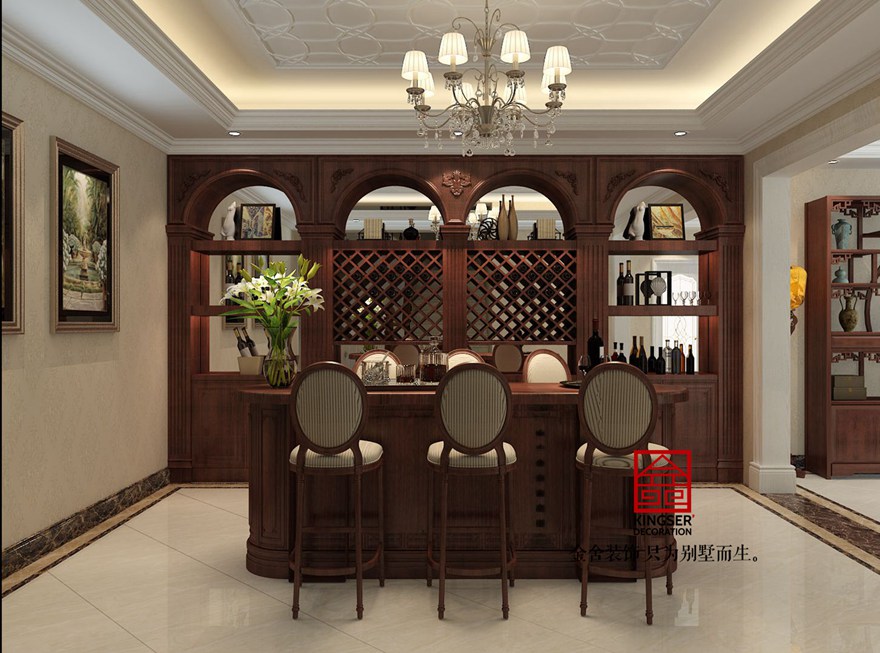 設計說明:此案例為石家莊金舍裝飾-原河名墅400平米歐式風格裝修效果圖。沒有純歐式的繁亂,客廳與臥室的對比繁簡統一,讓人心情平靜。椅子藍色皮質與臥室藍色布藝相輝映,使之更為整體。束花裝飾點綴及綠植擺設使整個空間更加清新田園。田園氣息讓人在忙碌的都市多了份愜意和滿足。金屬材質以及水晶吊燈讓整個空間更為時尚、大氣。真正做到了大氣而又內容。