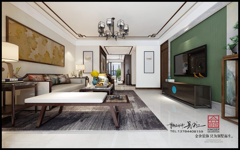 本方案為石家莊金舍裝飾-榮盛華府178平米新中式風格裝修效果圖。風格為新中式,倦鳥歸林,魚翔淺底,落葉歸根,這都是對