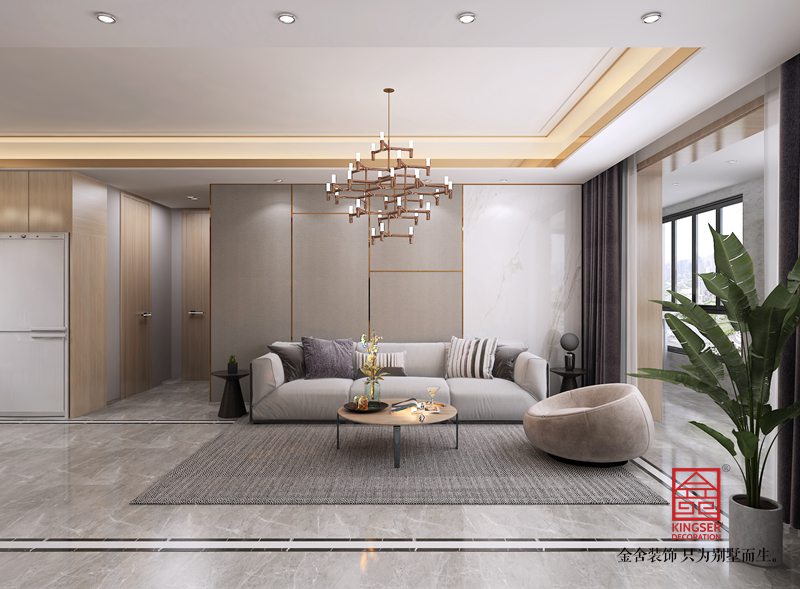 設計說明:此案例為石家莊金舍裝飾-翰墨儒林94平米現代簡約裝修效果圖。少即是多,多即是少。如果發現自己的家被濃烈的世俗氣息淹沒了本屬于你的獨特氣質和精致品位,那你可能是擁有的東西太多——書和雜志,家居辦公用品和電腦設備,玩具總匯以及廚衛用具。怎樣才能將自己從繁雜中解救出來,怎樣才能走出無端堆砌的束縛,而生活在一個舒適又美觀的環境中呢?答案就是簡約主義。以寧缺勿濫為精髓,合理的簡化居室,從簡單舒適中體現生活的精致。