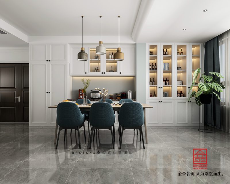 設計說明:本案為石家莊金舍裝飾-榮盛華府190平米現代風格裝修效果圖。是一套現房住宅,位于榮盛華府,因為是邊戶的住宅戶型加上本身樓層偏高,所以整體采光比較好,這也是本案考慮設計用色的一個關鍵點,本案業主是一位年輕的男士,也是準備結婚的婚房。由于工作性質,很喜歡花藝綠植以及一切跟美好相關的事物,喜歡的風格是簡單的淺灰色調自然系北歐風,所以在用色上我們采用了大面積淺灰色調搭配局部亮色點綴,再加上經典的木色系家具沉淀氣質,他們的小家就這樣應運而生,我們用最淳樸的藝術語言,詮釋著屬于他們的專屬幸福。