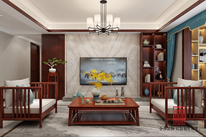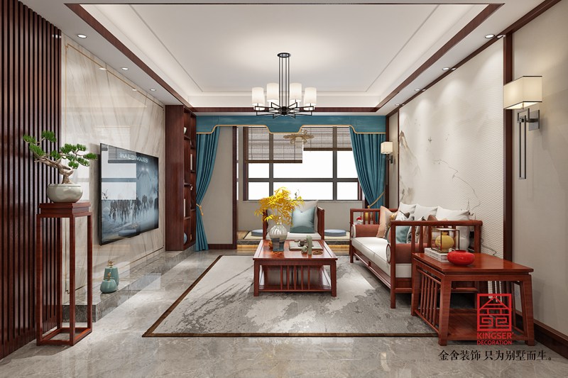 設(shè)計(jì)說明:此案例為石家莊金舍裝飾-東南智匯城132平米新中式風(fēng)格裝修圖。新中式風(fēng)格,既是中國(guó)傳統(tǒng)風(fēng)格文化與現(xiàn)代時(shí)尚元素的融合與碰撞,又是在中國(guó)當(dāng)代文化理解基礎(chǔ)上的現(xiàn)代設(shè)計(jì)。因?yàn)樯罘绞降霓D(zhuǎn)變,整體在向現(xiàn)代靠攏,運(yùn)用簡(jiǎn)單的直線條使空間凸顯層次感,加之主人的個(gè)人喜好和品味,完成符合現(xiàn)代人的新中式。沒有太多的造型修飾,利用吊頂來區(qū)分各個(gè)區(qū)域的功能定位,運(yùn)用軟裝搭配,提升整體的氛圍及品質(zhì)。