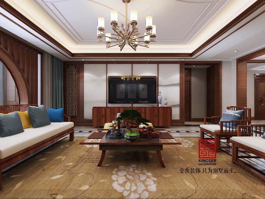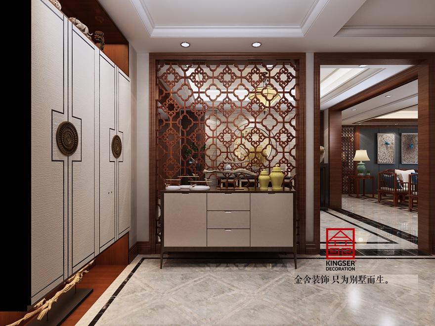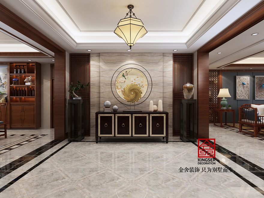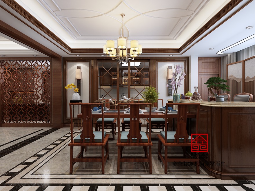 設(shè)計說明:此案例為石家莊金舍裝飾-御河上院219平米新中式裝修效果圖。
