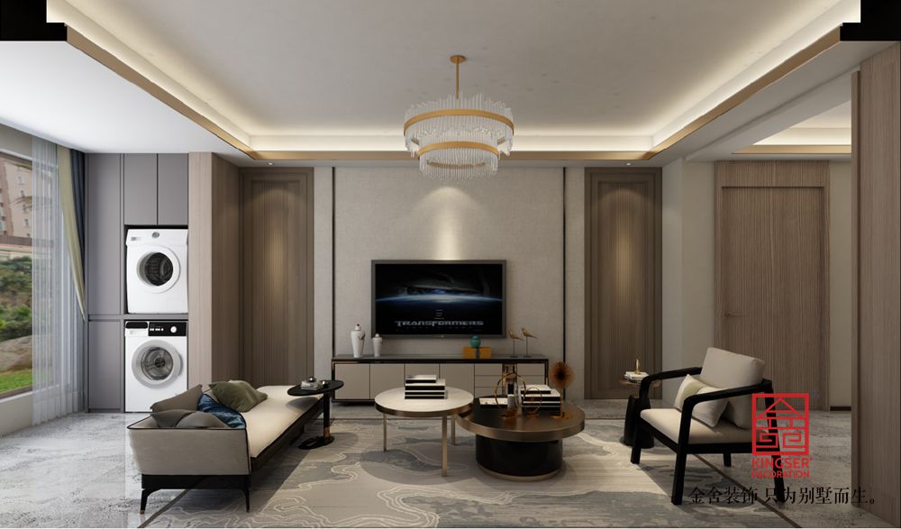 設計說明:此案例為石家莊金舍裝飾-融創中心180平米新中式風格裝修案例。新中式風格不是純粹的元素堆砌,而是通過對傳統文化的認識,將現代元素和傳統元素結合在一起,