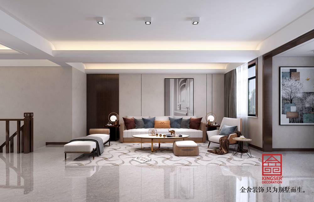提取的是新中式的靜雅,現在都市社會,熱鬧的街市,徹夜的燈光,快節奏的工作環境,讓人不由想要一處安靜的地方撤下疲憊的外殼,好好放松一下。無論潮流如何變化,我們依然不可否認,充滿東方情調的靜謐居所,才是最能打動人心的。而時下流行的新中式風格,不但摒棄了過去的繁復雕飾、濃墨重彩,而且融入了更多現代人的審美眼光與追求,因而頗受當代年輕人的鐘愛。