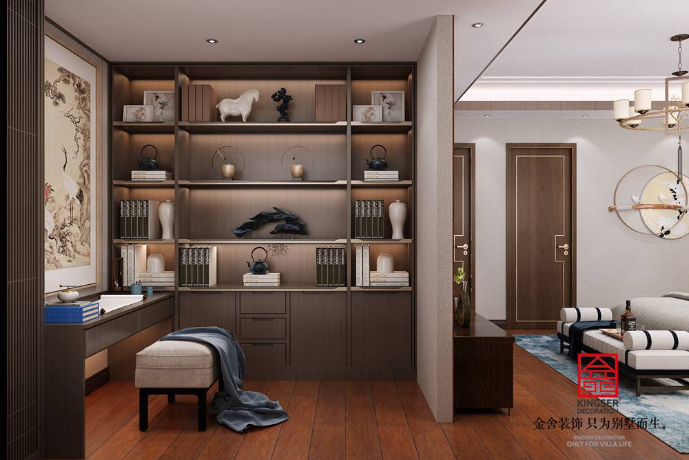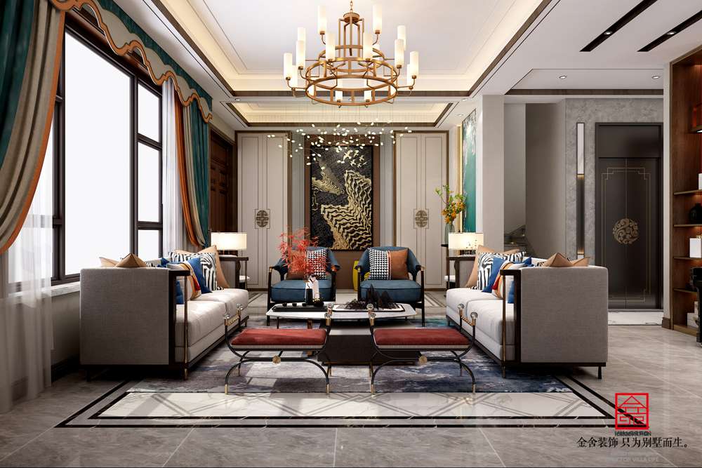 設計說明:此案例為石家莊金舍裝飾-大者聯排別墅300平米中式風格裝修效果圖,傳統文化和東方美學的詮釋,將屋子打造成了一個具有記憶點的新東方生活體驗空間。讓人只想在這東方詩意里,隔絕一切喧囂雜念,回歸最真實恬淡的心境。古典質感與現代潮流相互碰撞,讓整個廳堂剔除繁雜、告別沉悶,處處散發著簡潔優雅、
