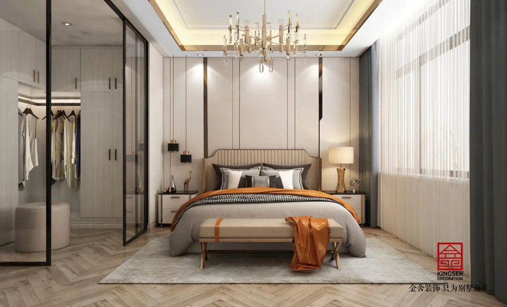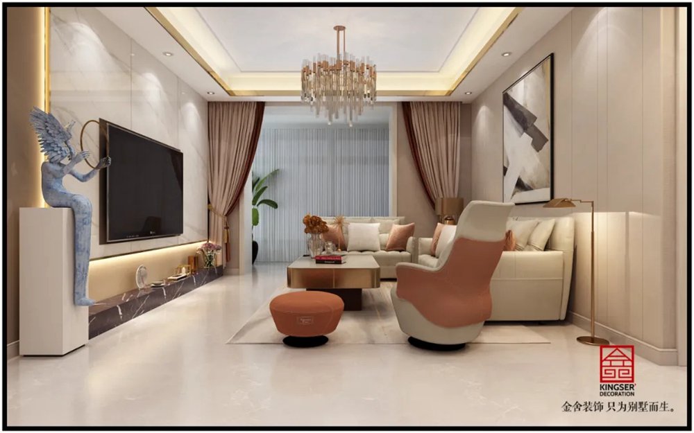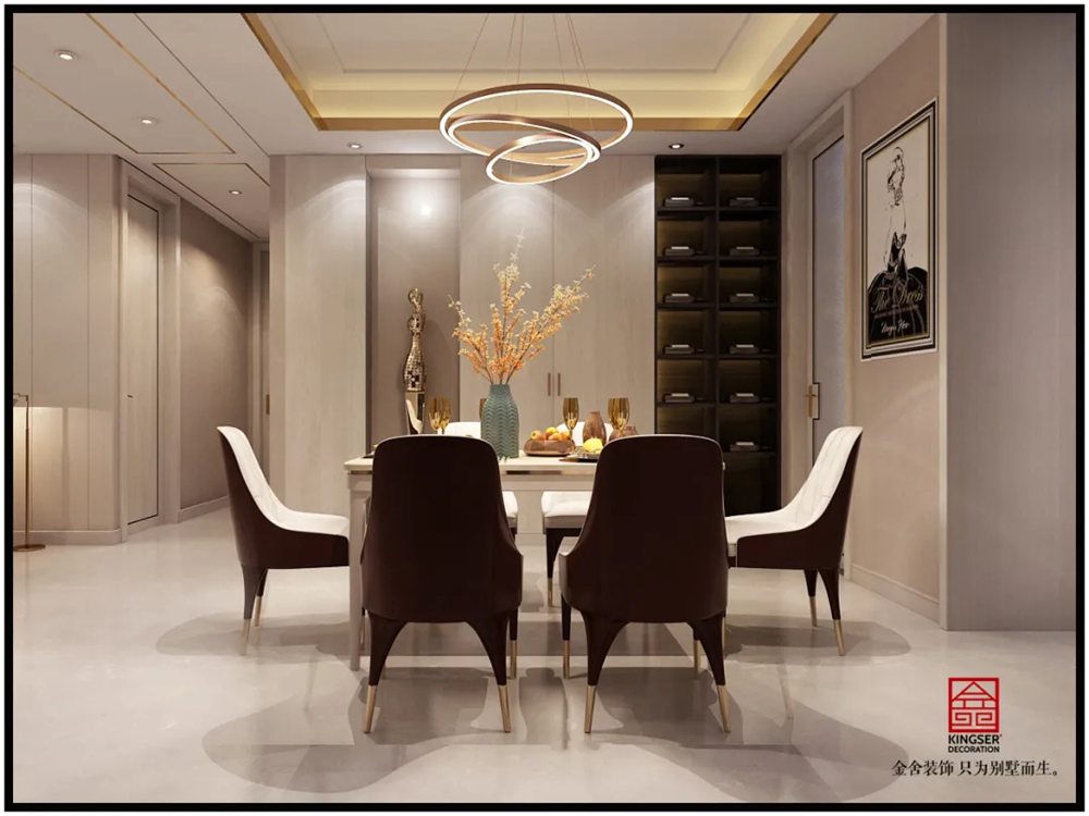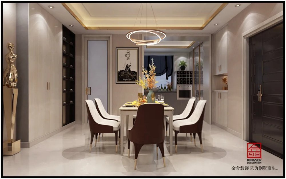 此案例為石家莊金舍裝飾-瀚林甲第166平米輕奢風格裝修案例。一縷和煦的陽光,照亮你的家。木色與大理石,不僅能襯托陽光的溫暖,在視覺上還有較強的延展性,相同色系的墻壁將整個家居空間合為一個統一整體,帶給居住者不一樣的視覺享受。