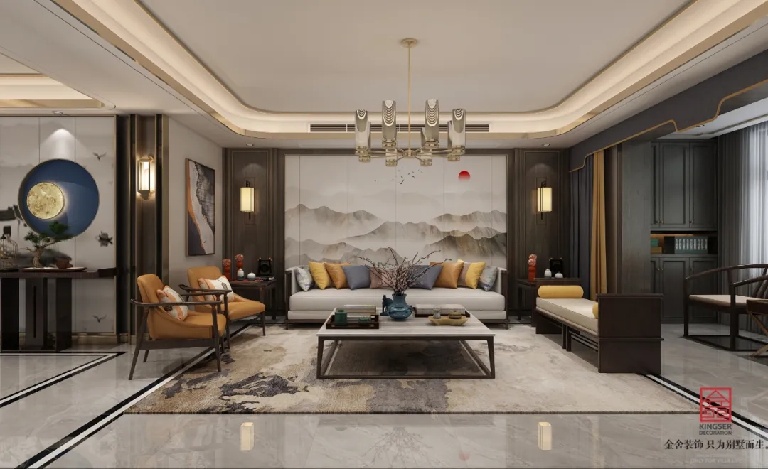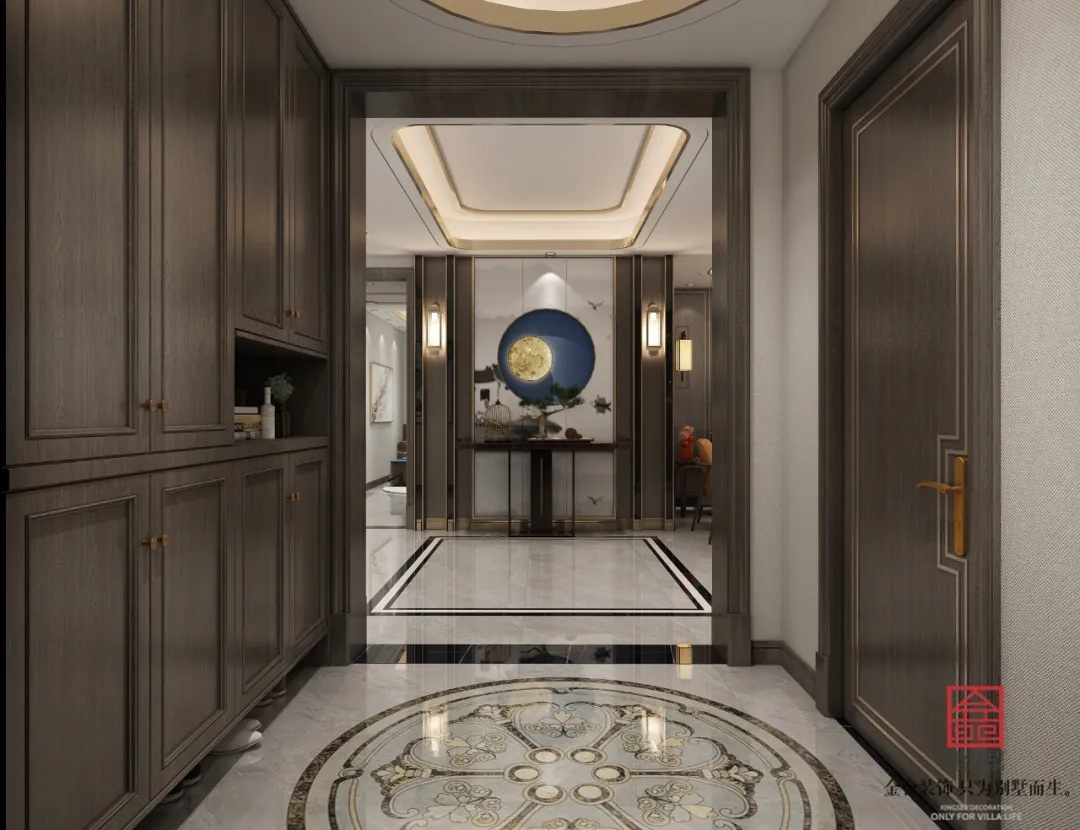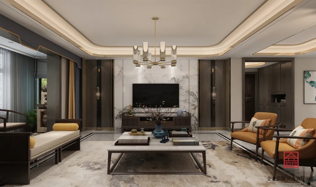 此案例為石家莊金舍裝飾-榮盛華府215平米新中式風(fēng)格裝修案例。新中式風(fēng)格傳承了傳統(tǒng)中式風(fēng)格的文化底蘊(yùn),又將現(xiàn)代審美融入其中,將含蓄內(nèi)斂的美學(xué)韻味徐徐呈現(xiàn)在了眾人面前,令人沉醉、留戀。似有靜謐、似含古韻,思想不禁浮想聯(lián)翩,無法掩飾一個(gè)人的精神世界,是心靈和性情的外化之地。中式元素與現(xiàn)代材質(zhì)搭配,既有文化的傳承又不會(huì)全盤固守傳統(tǒng),是現(xiàn)代的思想與千年來的文化彼此融合與碰撞。