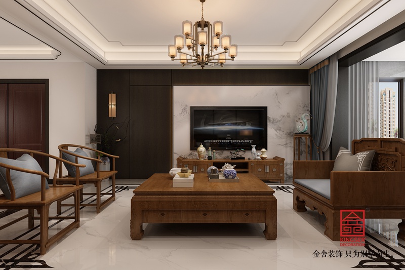本案為石家莊金舍裝飾-東南智匯城191平米新中式風格裝修案例。風格定義為新中式風格。