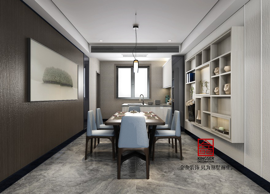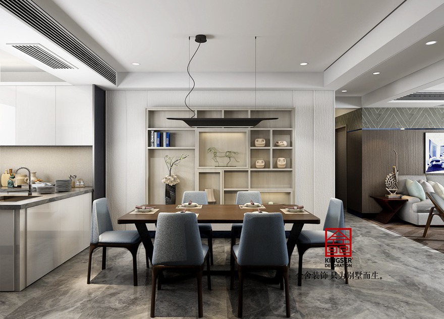 設計說明:此案例為石家莊金舍裝飾-保利拉菲公館197平現代輕奢裝修效果圖。入戶玄關,整體風格定調為現代意大利輕奢風格。硬裝顏色多與黑白灰為主,暖咖色為輔。由于原始結構房高僅有2720,所以頂面無任何多余裝飾線,主要用光影以及凝練的線條去劃分空間感,地面兩種材質去劃分空間,底色多以灰色系為主,軟裝家具用亮顏色去填充家中的冰感??蛷d硬裝顏色劃分為兩個部分,頂面與電視墻相接,淺色調裝飾,墻面雅士白天然大理石點綴輕奢,沙發墻與地面相接,暖咖色系,多以木制品出現,更為柔和。