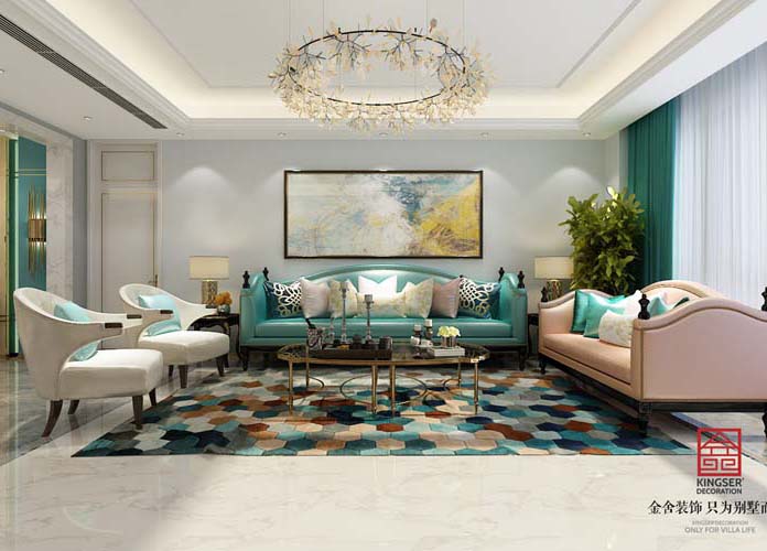 設計說明:此案例為石家莊金舍裝飾-林蔭大院260平米輕奢風格裝修效果圖。設計之美不應全倚仗修飾,而應該醉在靈魂。金屬的高貴冷感,更易與小物件和小細節催生出默契,精致的輕奢氣質點睛而出。