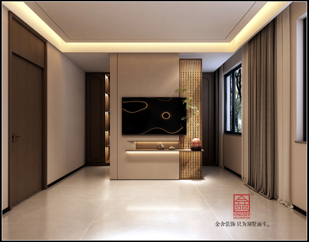 本方案聚焦新中式客廳設計,以傳承與創新為核心思路。空間摒棄繁雜造型,借簡約線條勾勒框架,淺棕、米白等低飽和色調鋪陳,營造溫潤、舒緩氛圍,契合現代人居對寧靜感的追求。