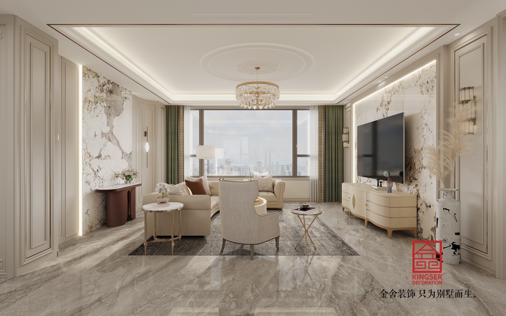 在設計過程中,摒棄了傳統美式可能存在的繁復與厚重,通過精簡線條、優化材質搭配、把控色彩層次,在保留美式風格舒適氛圍的同時,提升空間的時尚度與品質感,打造出既符合現代審美,又能滿足居者對高品質生活追求的居住空間,讓居者在自在愜意中感受輕奢生活的精致與美好。