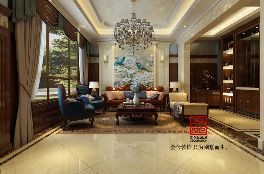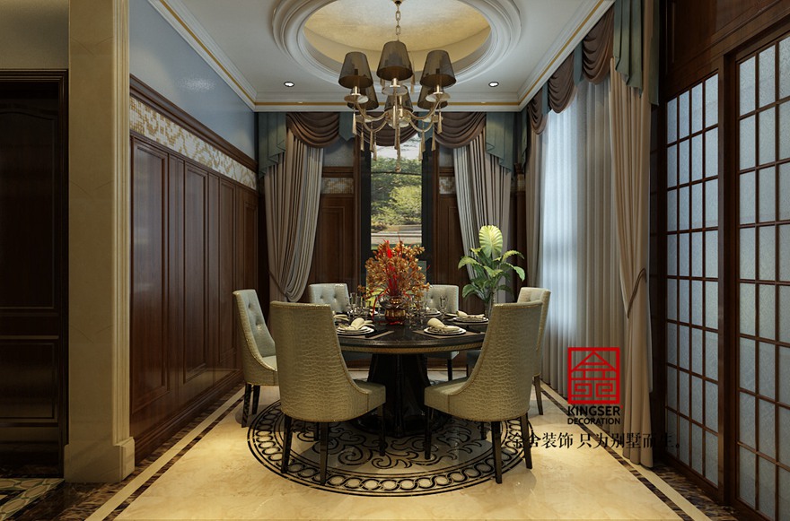 此案例為石家莊金舍裝飾-大者別墅400平米新古典風格裝修效果圖。新古典風格裝修從簡單到繁雜、從整體到局部,精雕細琢,鑲花刻金都給人一絲不茍的印象。一方面保留了材質、色彩的大致風格,仍然可以很強烈地感受傳統的歷史痕跡與渾厚的文化底蘊,同時又摒棄了過于復雜的肌理和裝飾,簡化了線條。